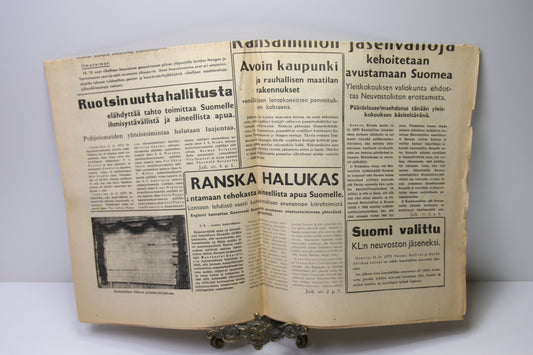 LoppuunmyytyUusi Suomi lehti vuodelta 1939