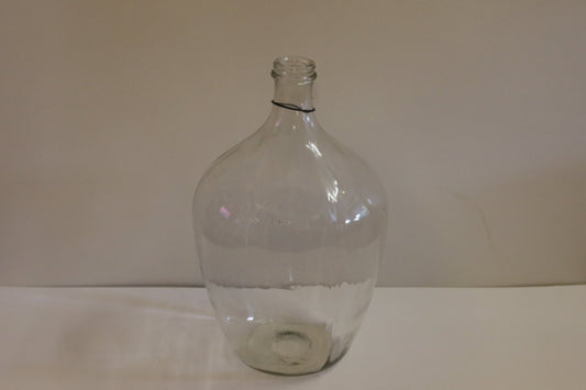 LoppuunmyytyKirkas iso lasipullo puukehikossa