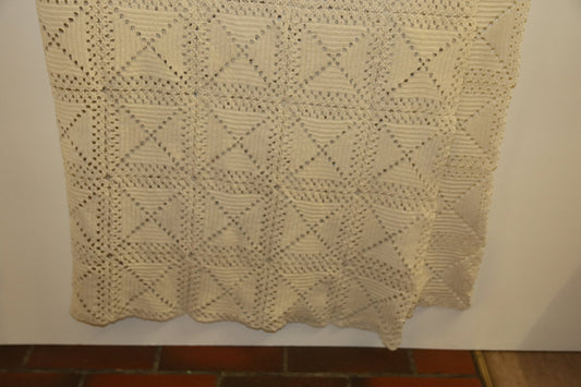 LoppuunmyytyPäiväpeitto kalastajalangasta virkattu