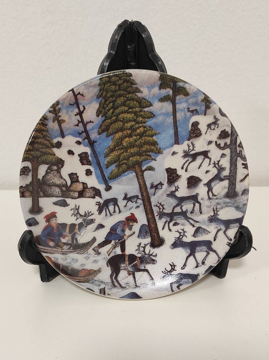 Arabia seinälautanen Poromies pulkassaan nro 25