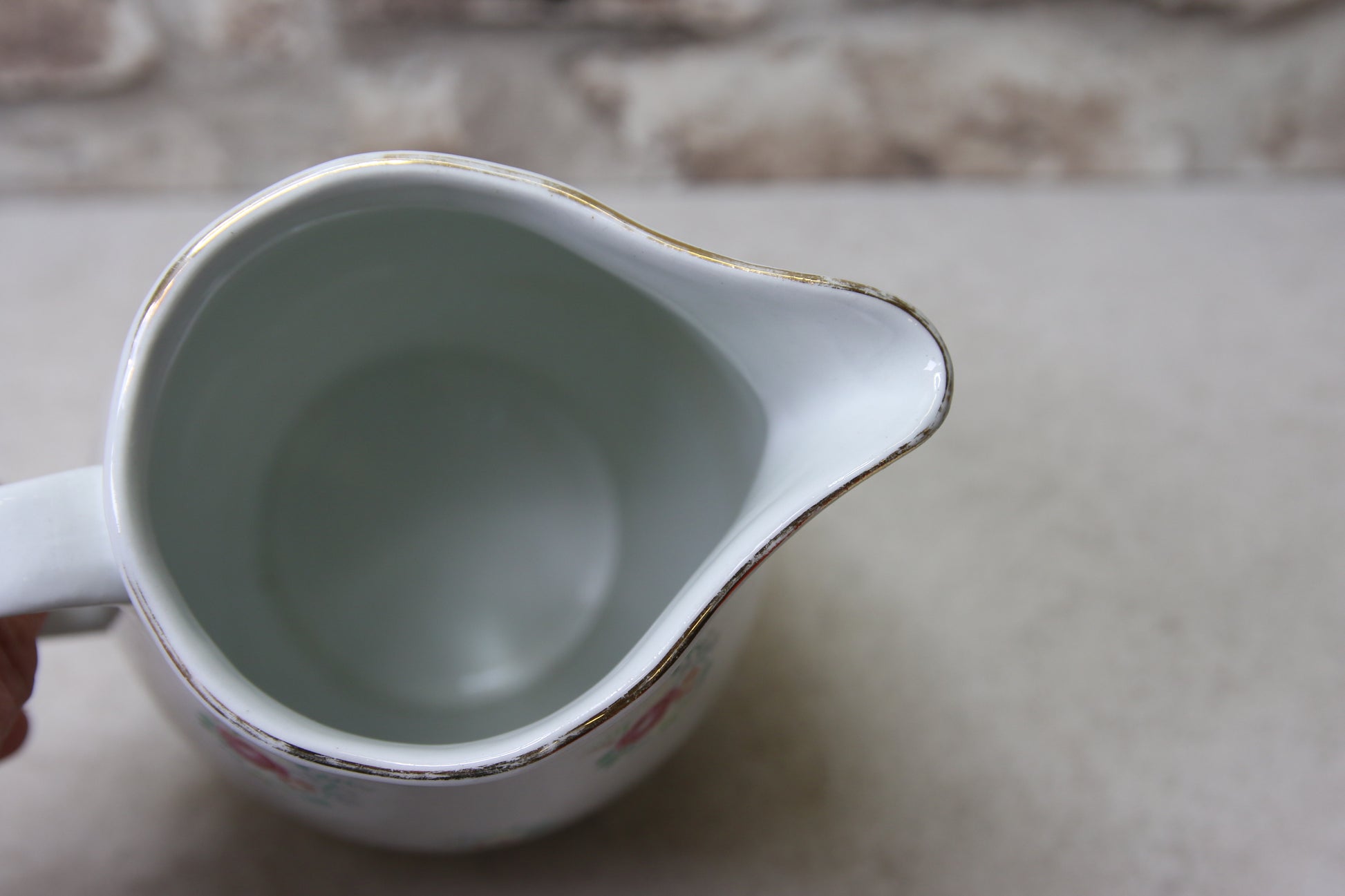 Suuaukon kultaus kulunut, muuten ehjä ja hyväkuntoinen.