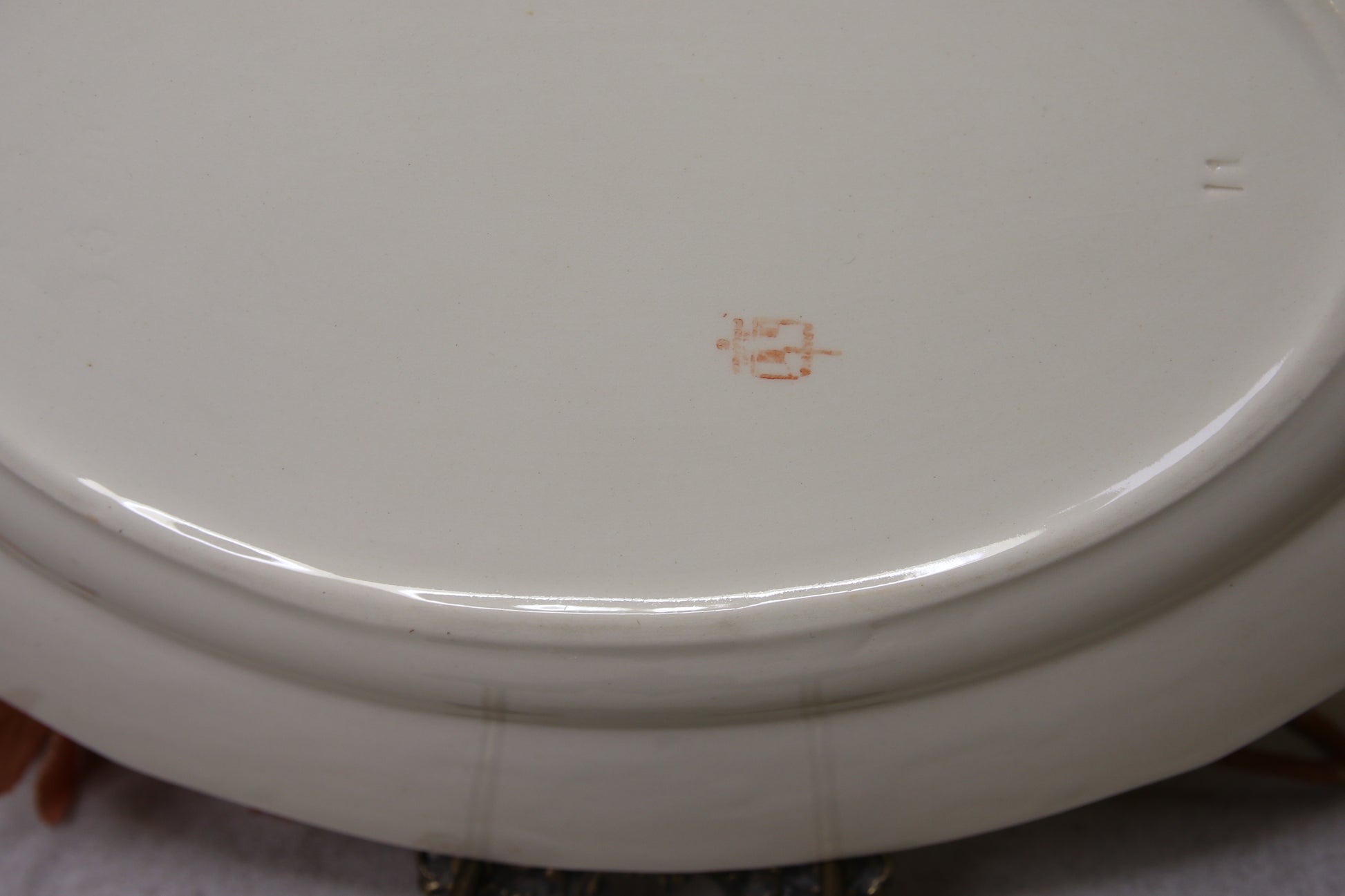 Posliinin väri vaalea, kultaus ok. Ehjä.