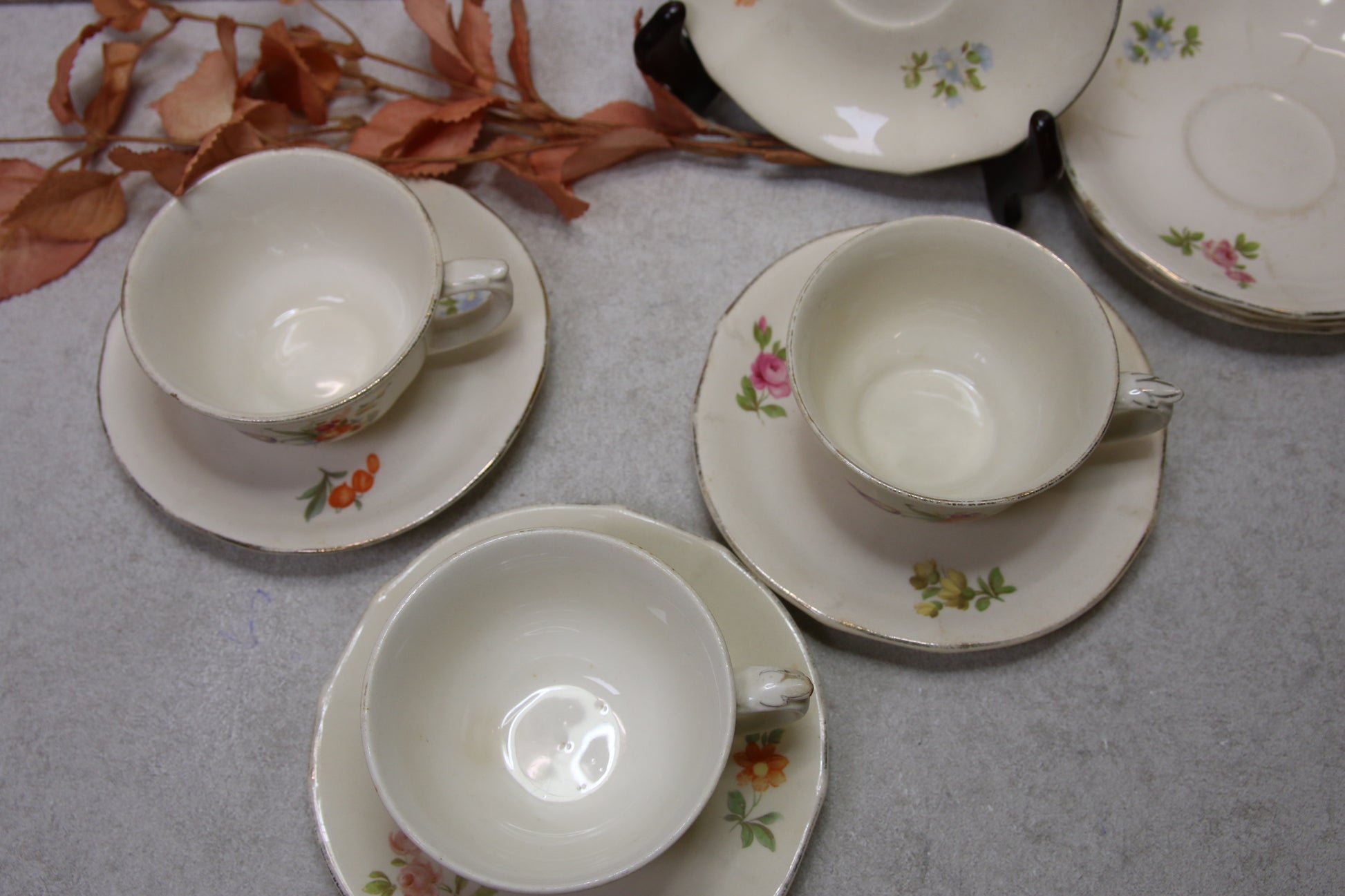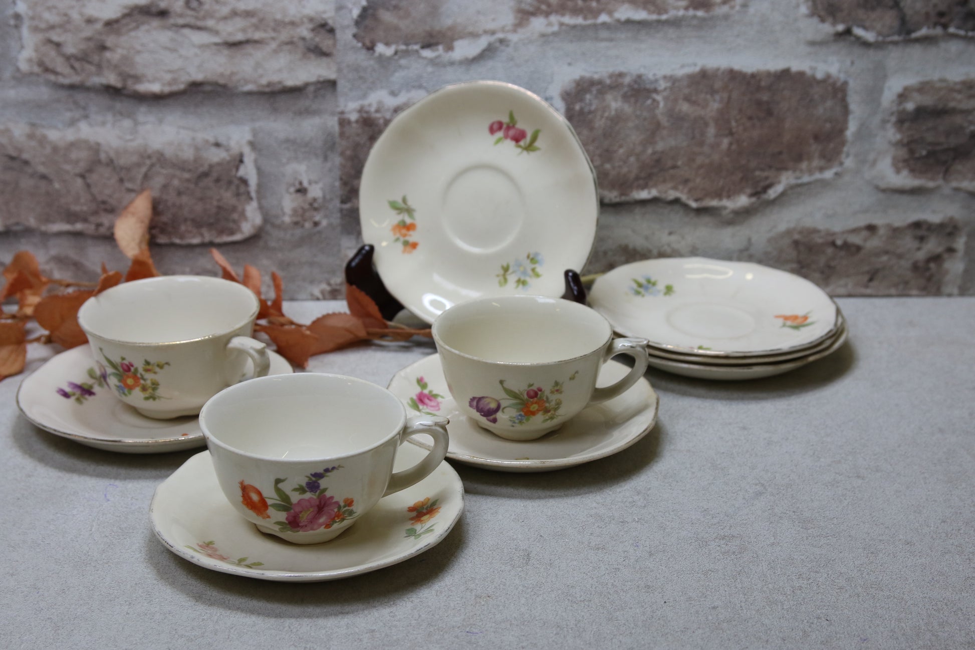 Myydään kolmen settinä. Kuppeja kolme ja aluslautasia 7kpl.