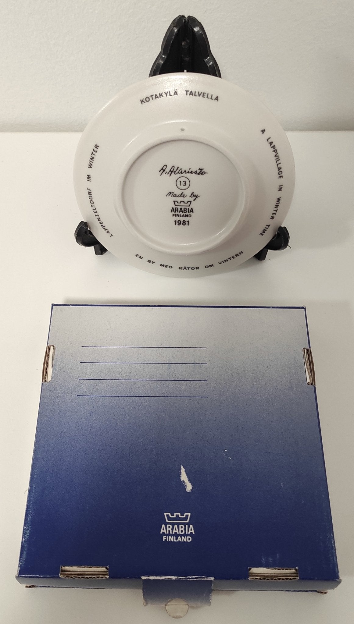 Arabian seinälautanen Kotakylä talvella, nro 13. Vuosi 1981. Suunnittelija Andreas Alariesto.