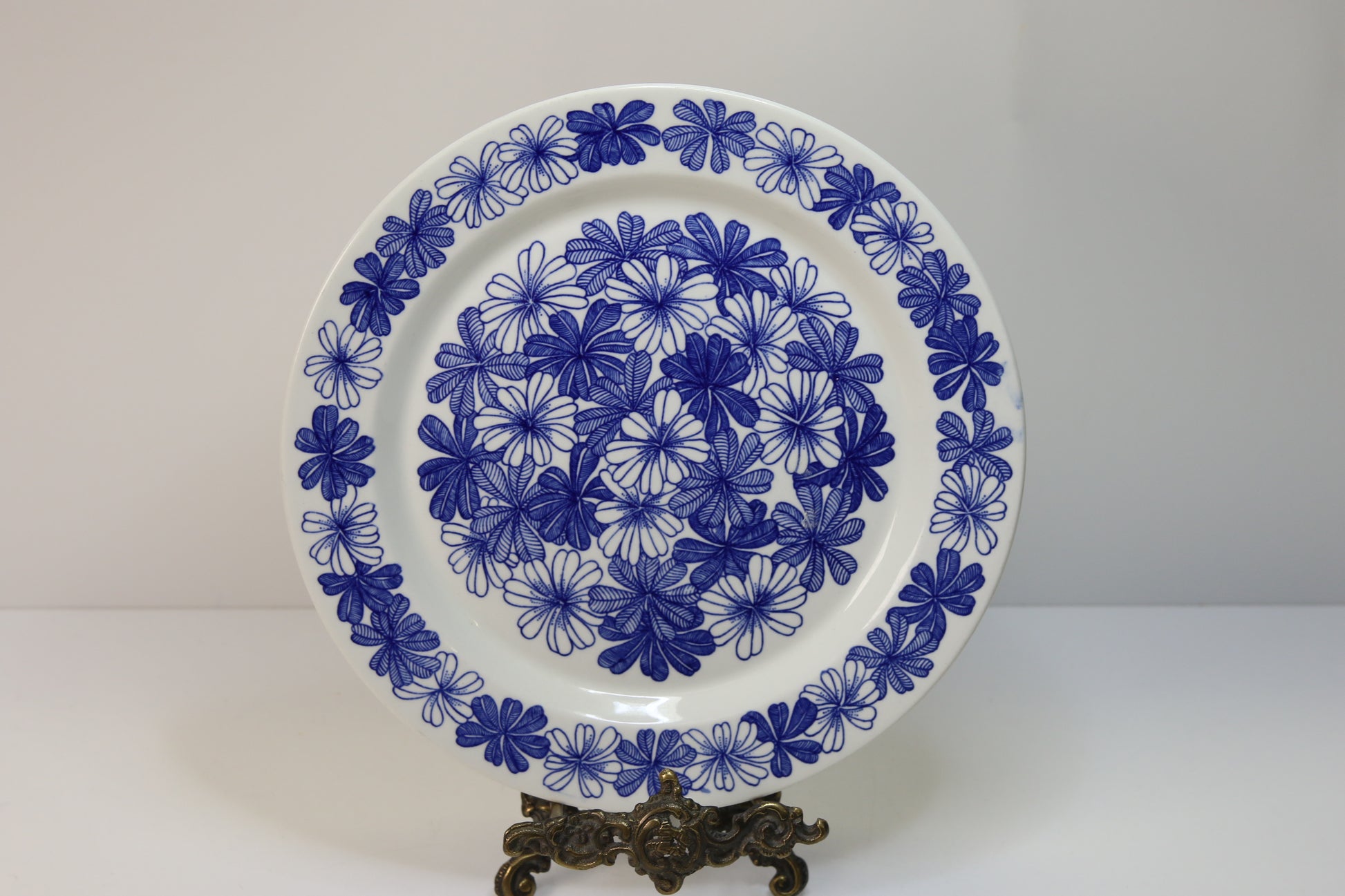 Arabian sinikukka matala lautanen. Suunnittelija Esteri Tomula.