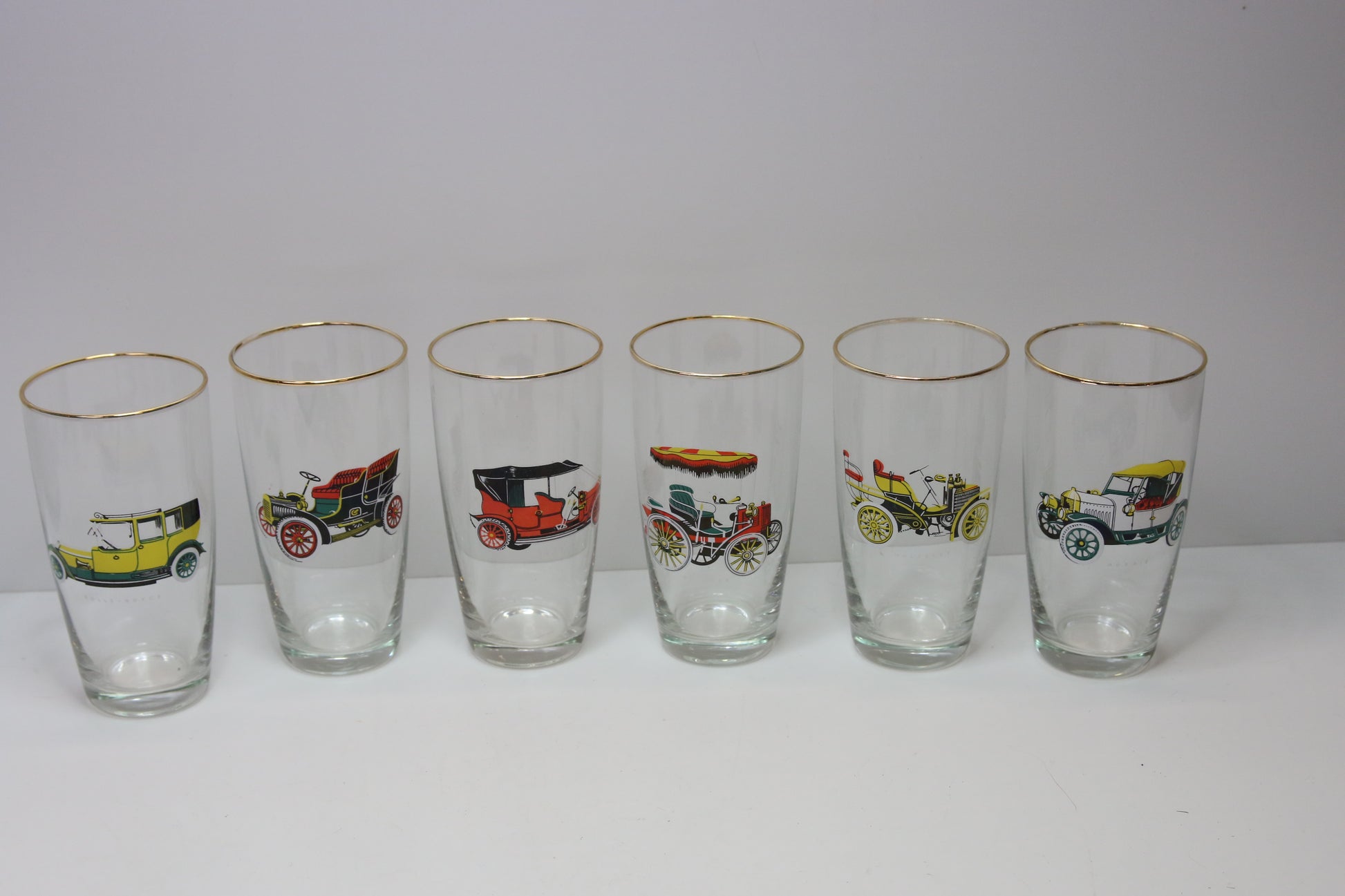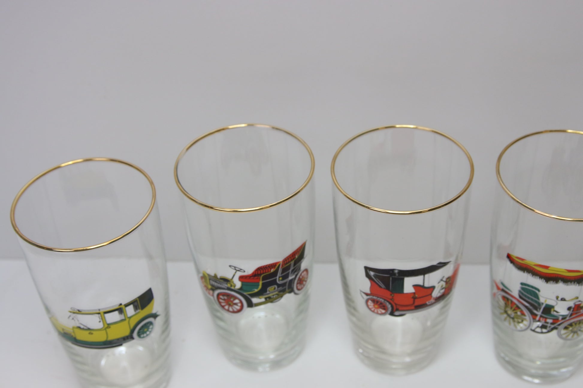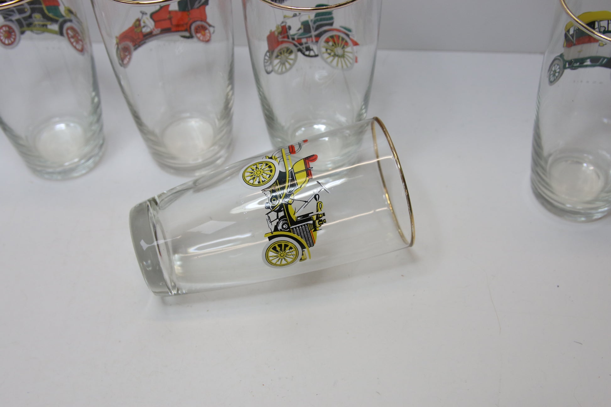 Laseissa vanhojen autojen kuvia.