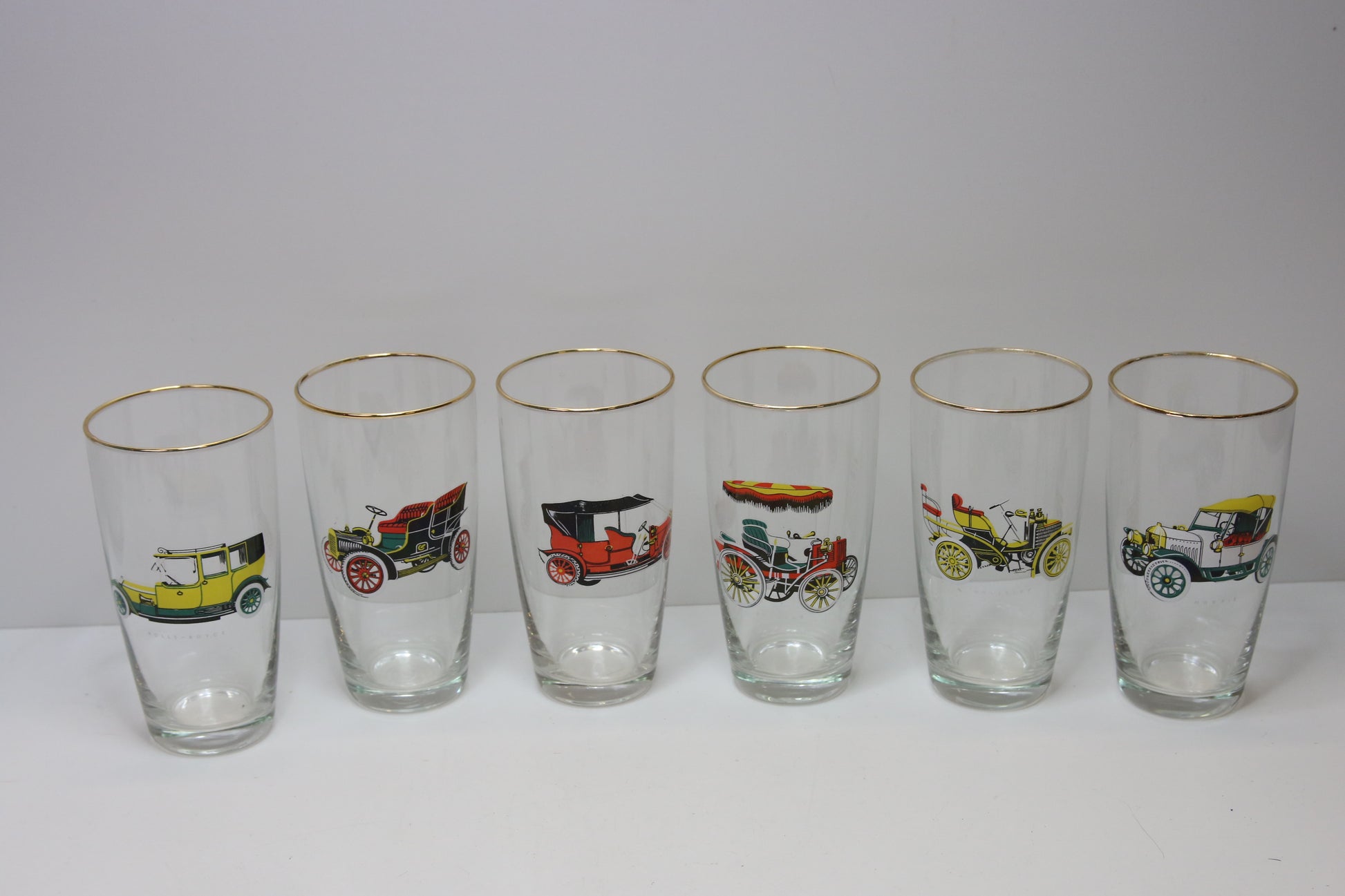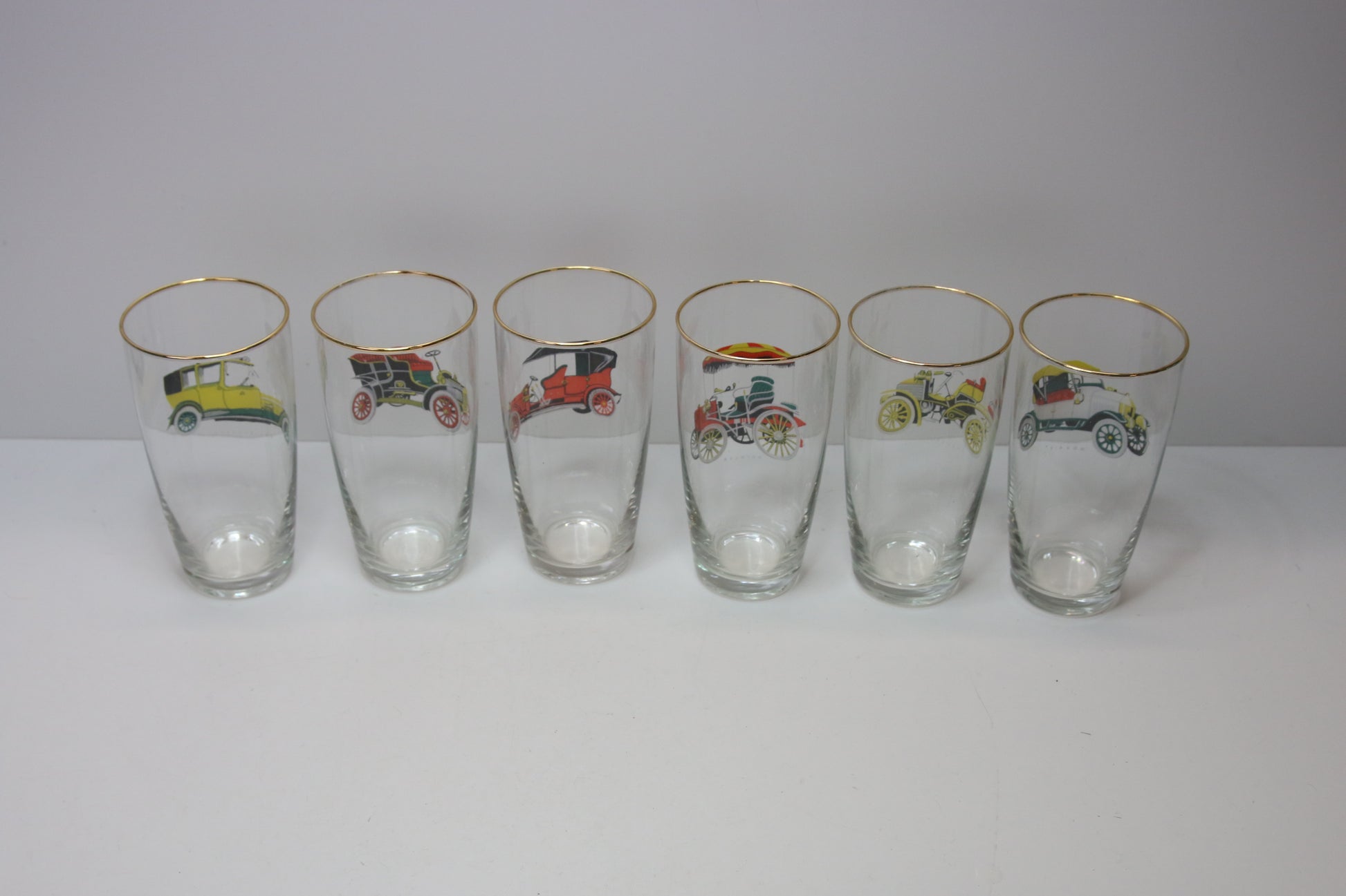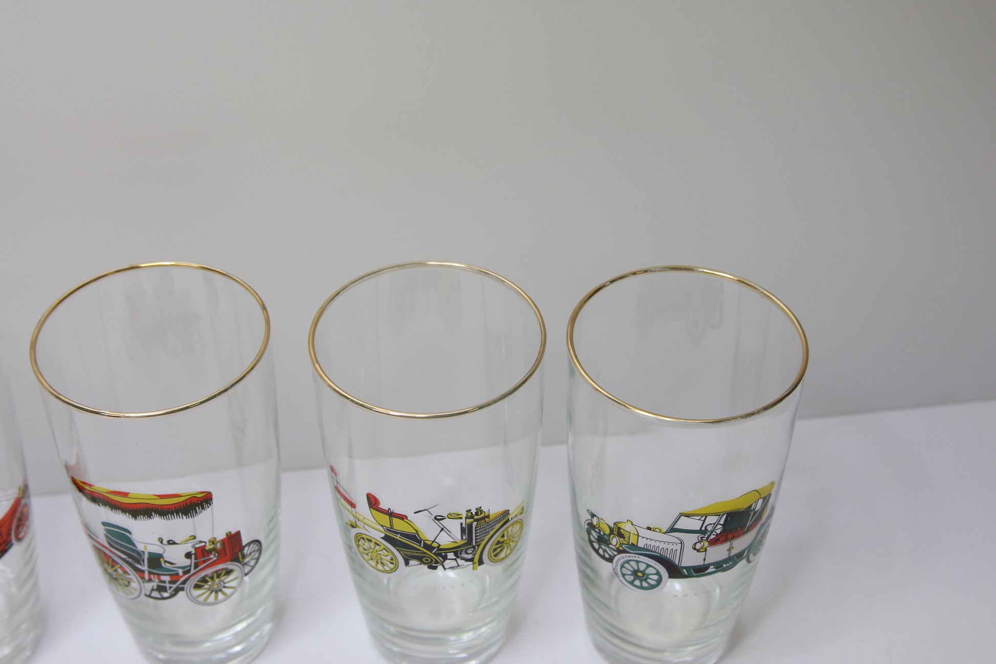 Laseissa vanhojen autojen kuvia.