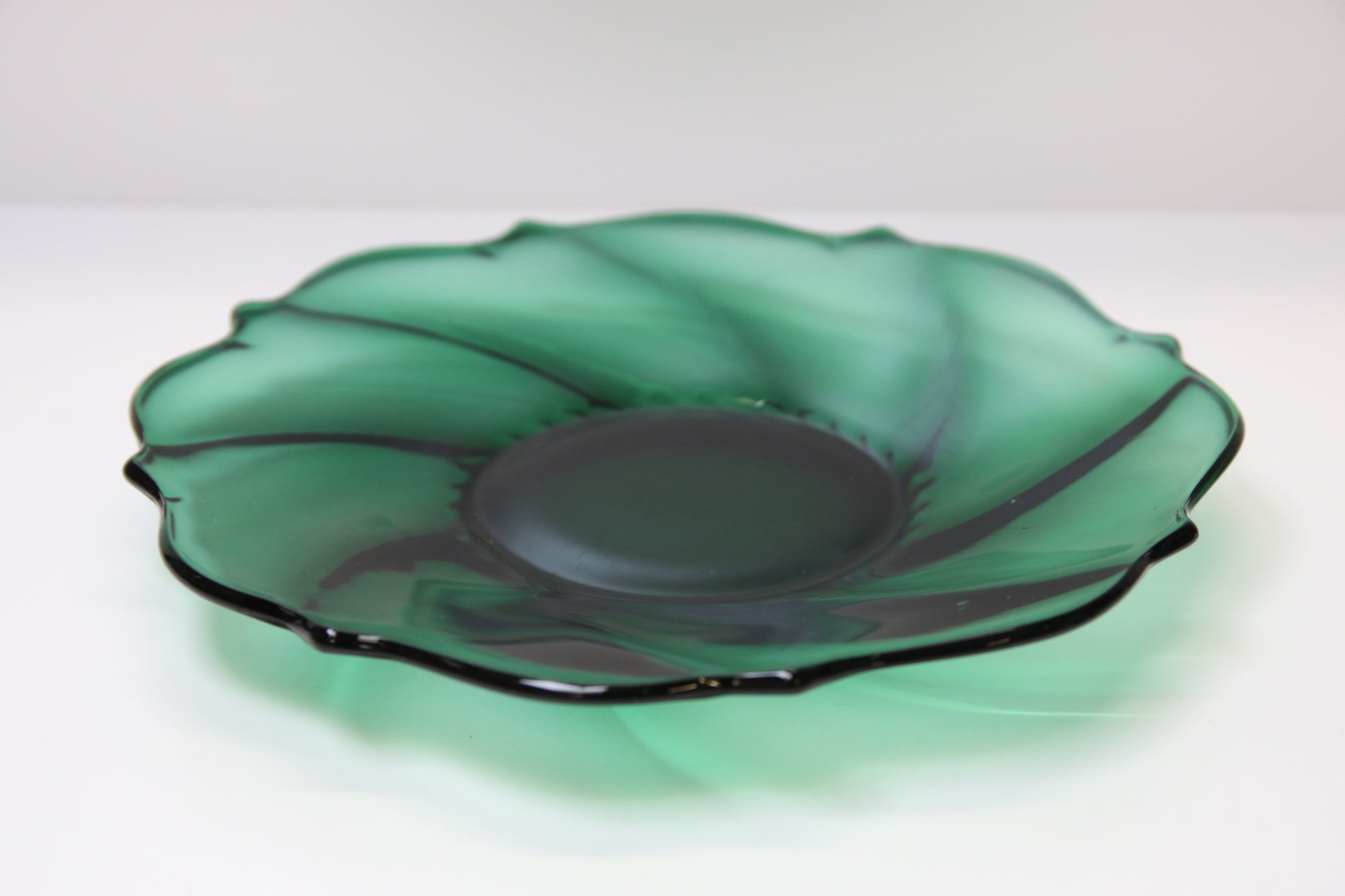 Karhulan lasin valmistama vihreä tarjoilulautanen.