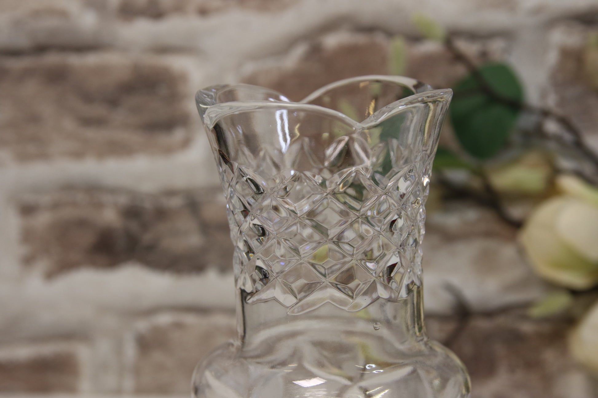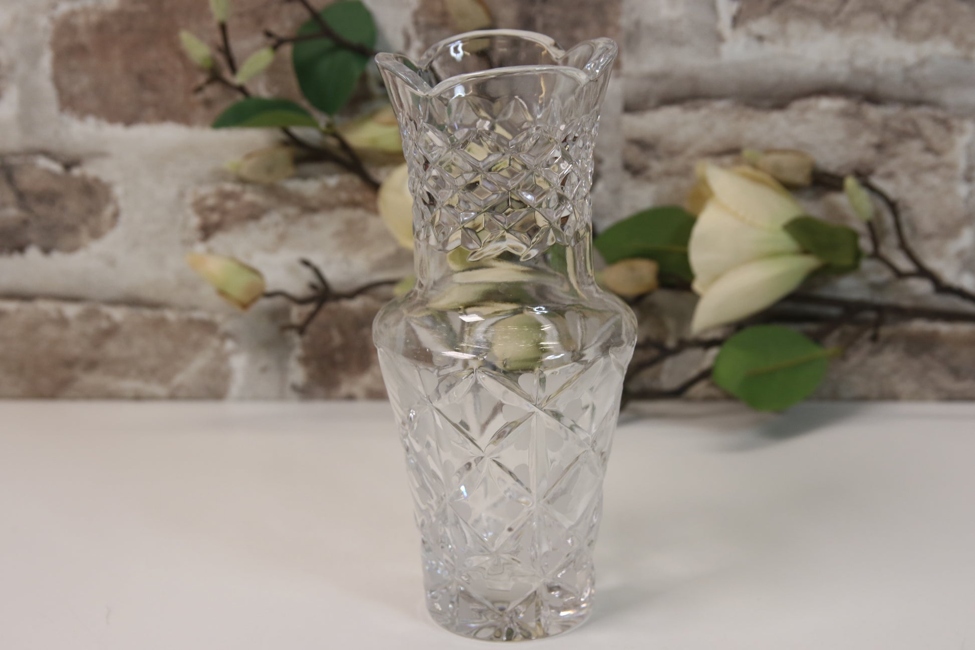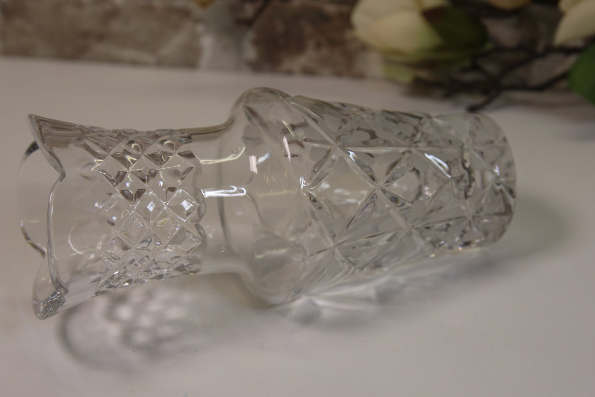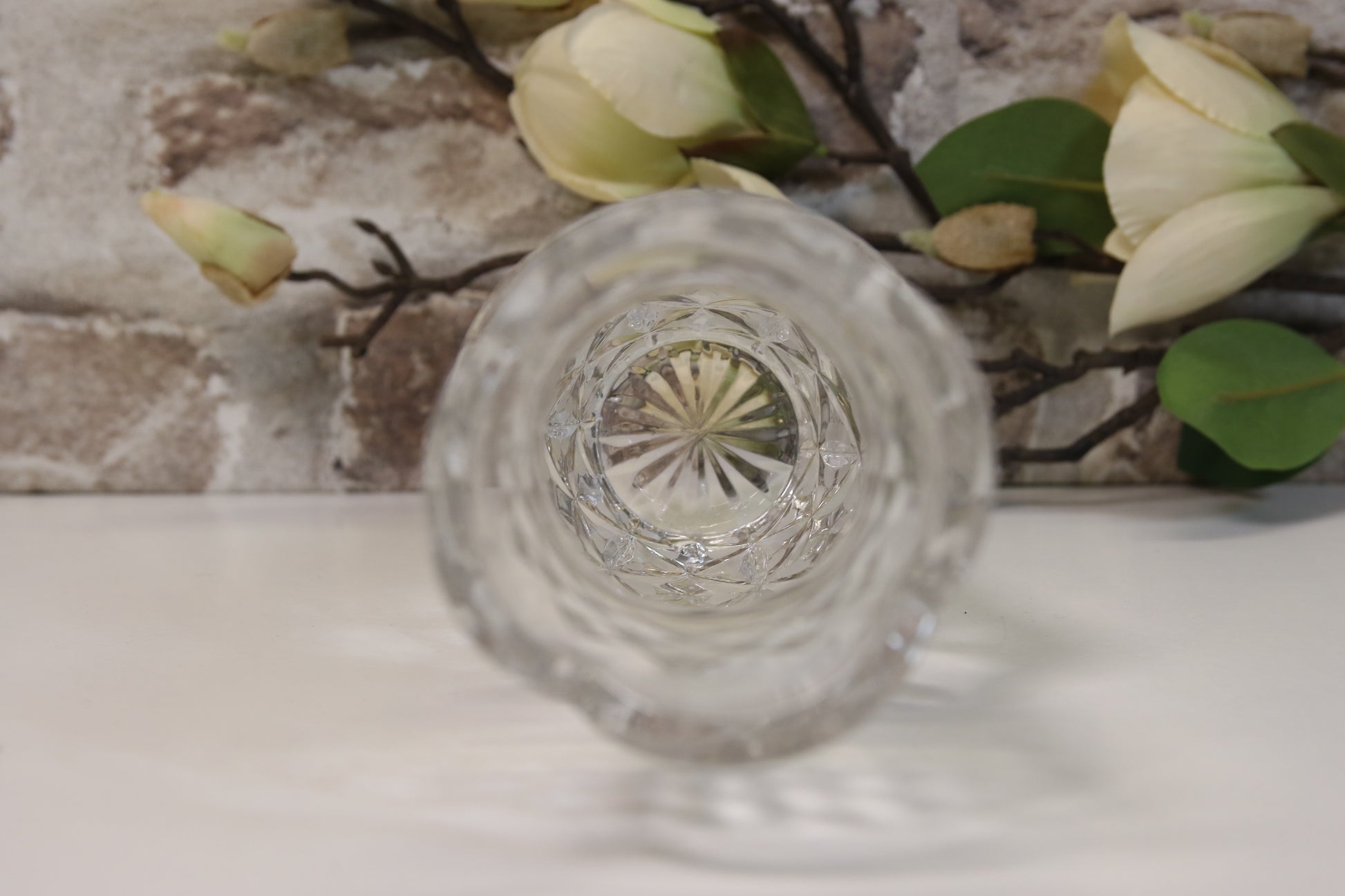 Kirkas, täysin ehjä ja siisti kristallimaljakko.
