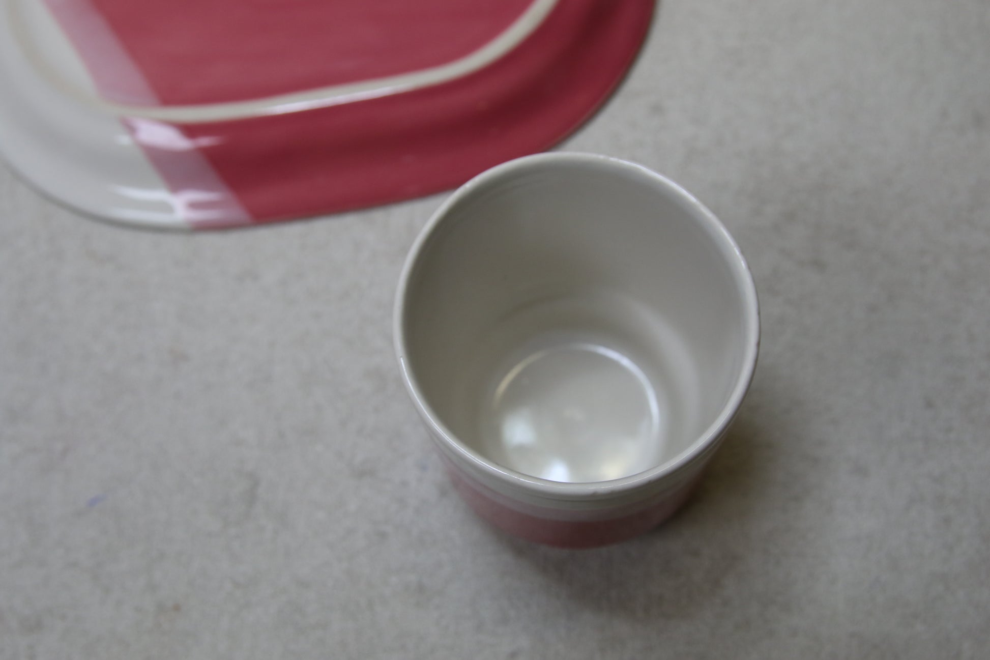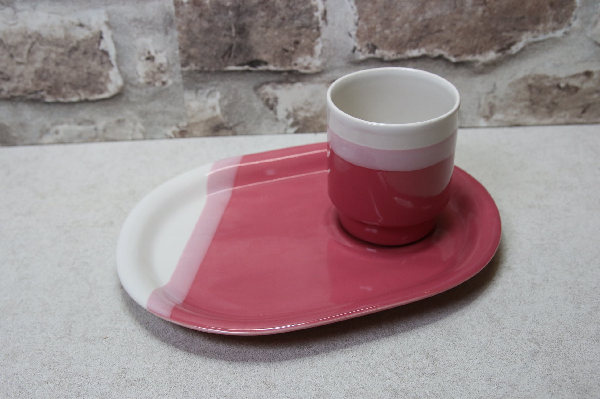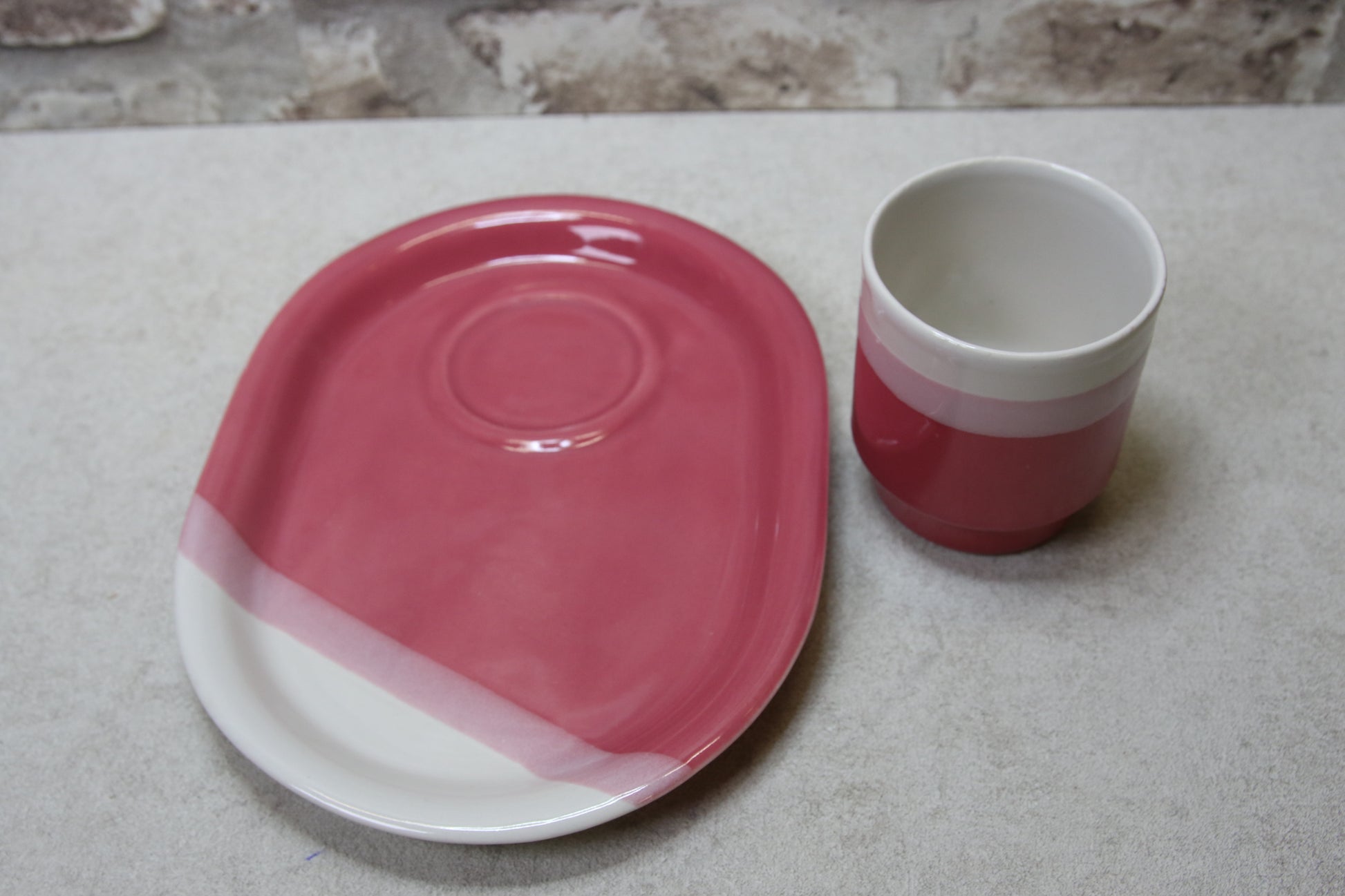 Lautanen 22cmx17cm, muki korkeus 8,5cm, halkaisija 7,5cm.