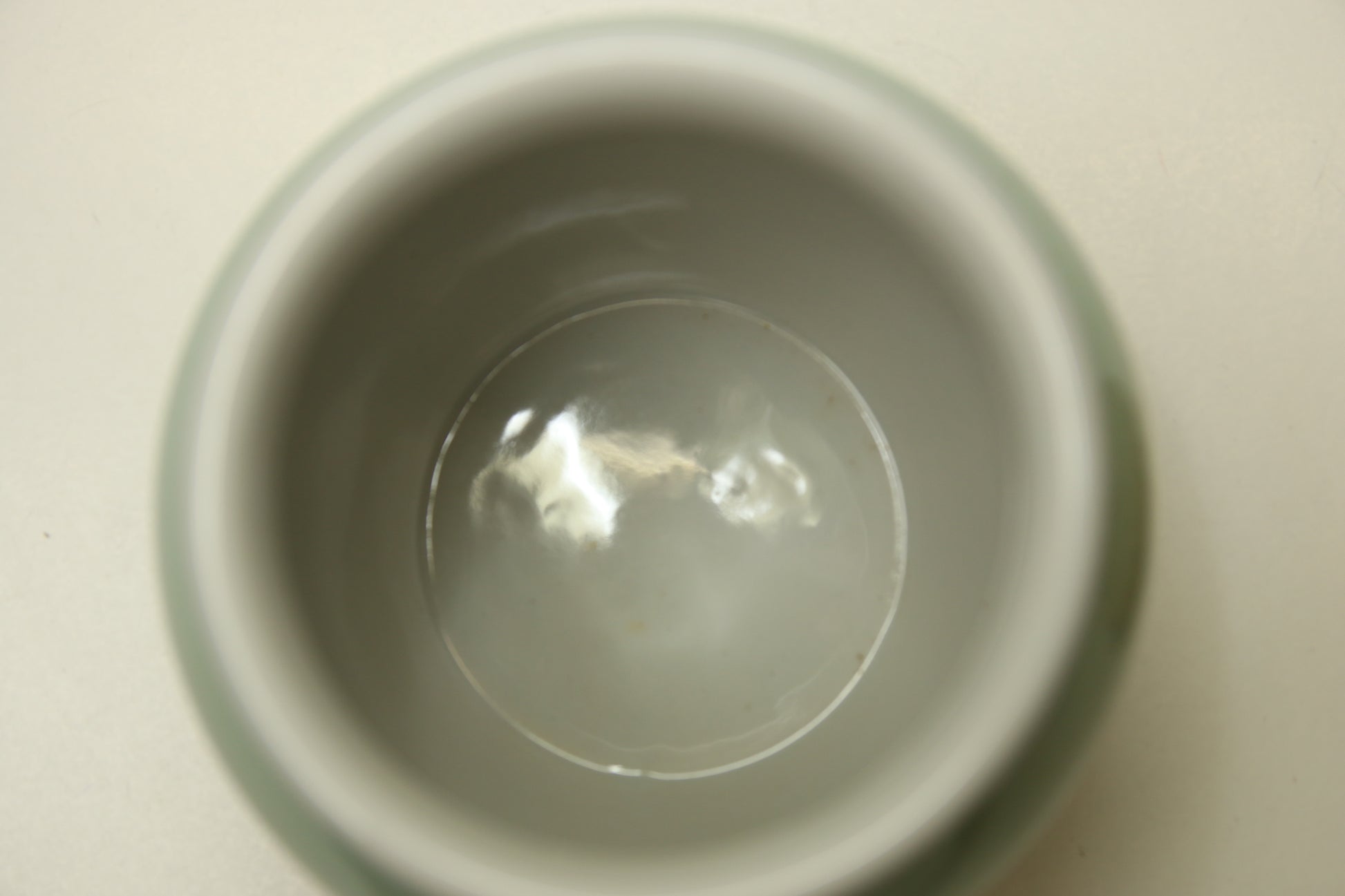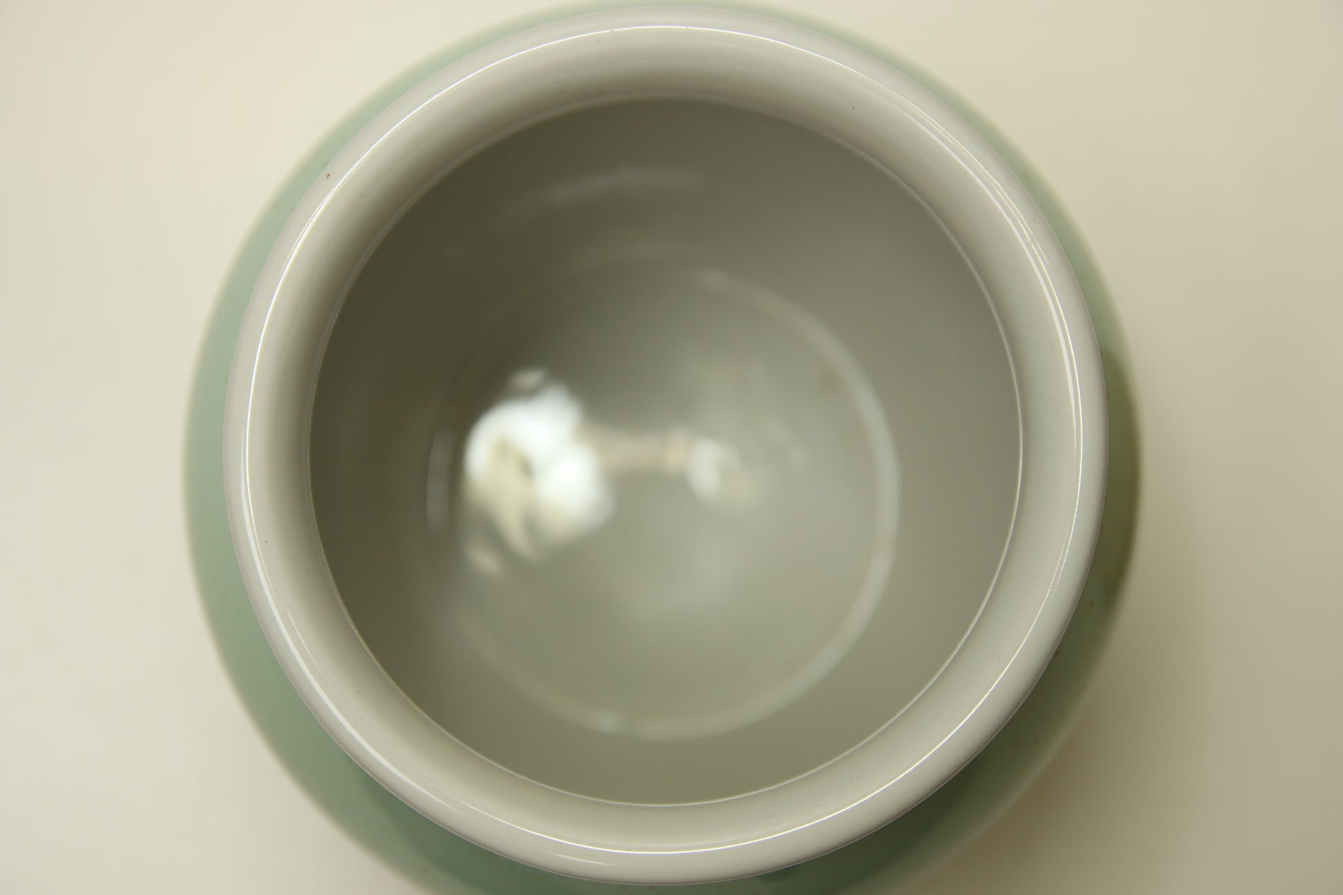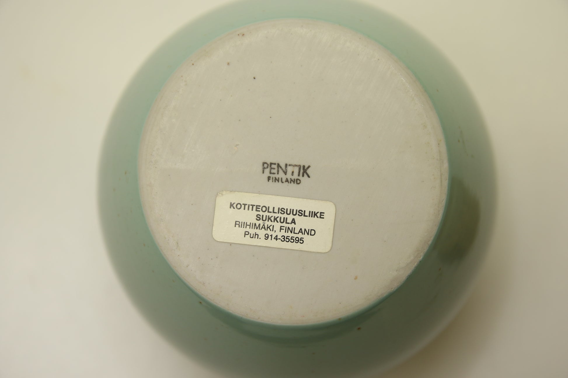 Pentikin mintun sävyinen säilytyspurkki korkilla.