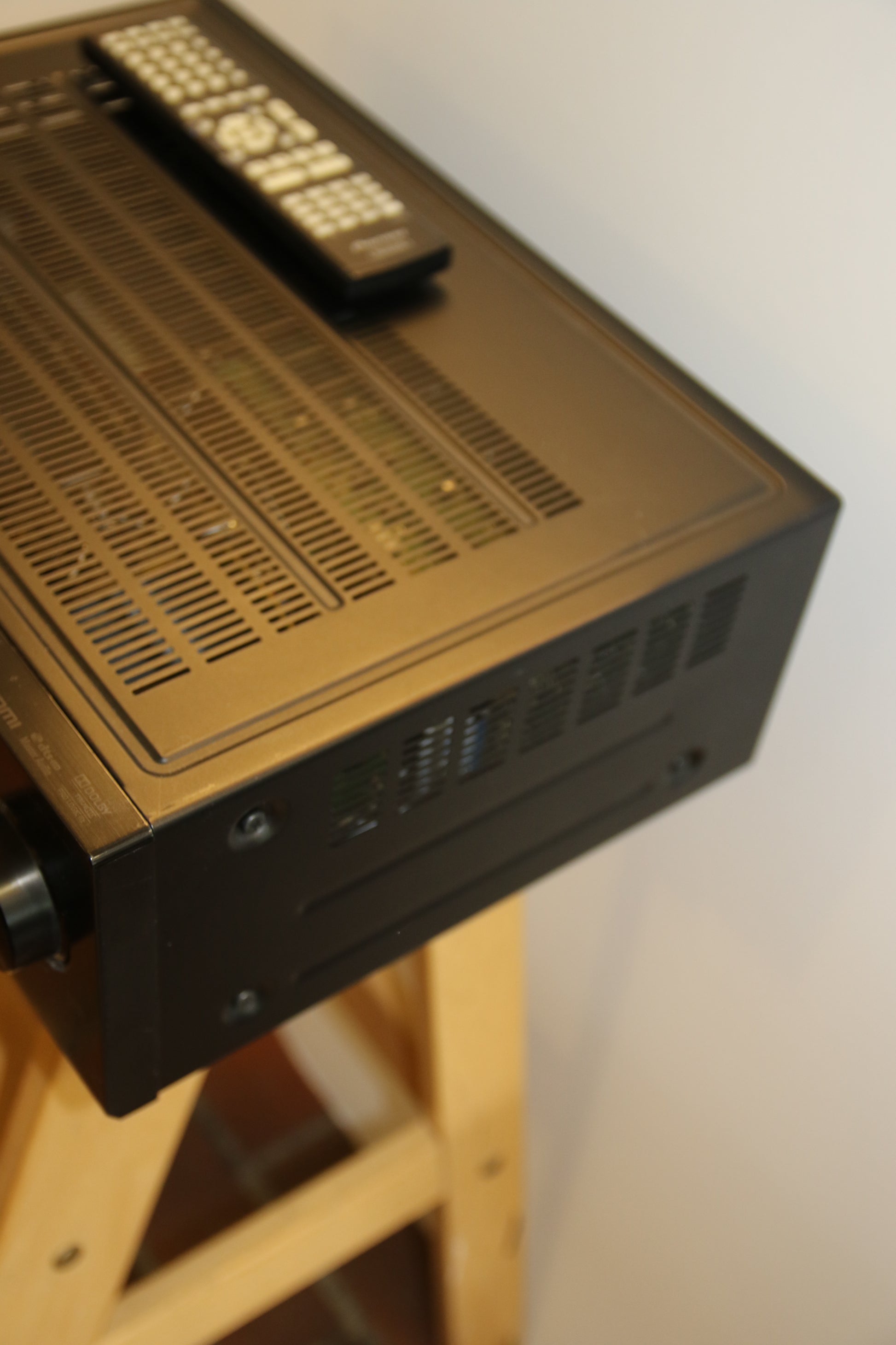 Musta siistikuntoinen toimiva vahvistin.