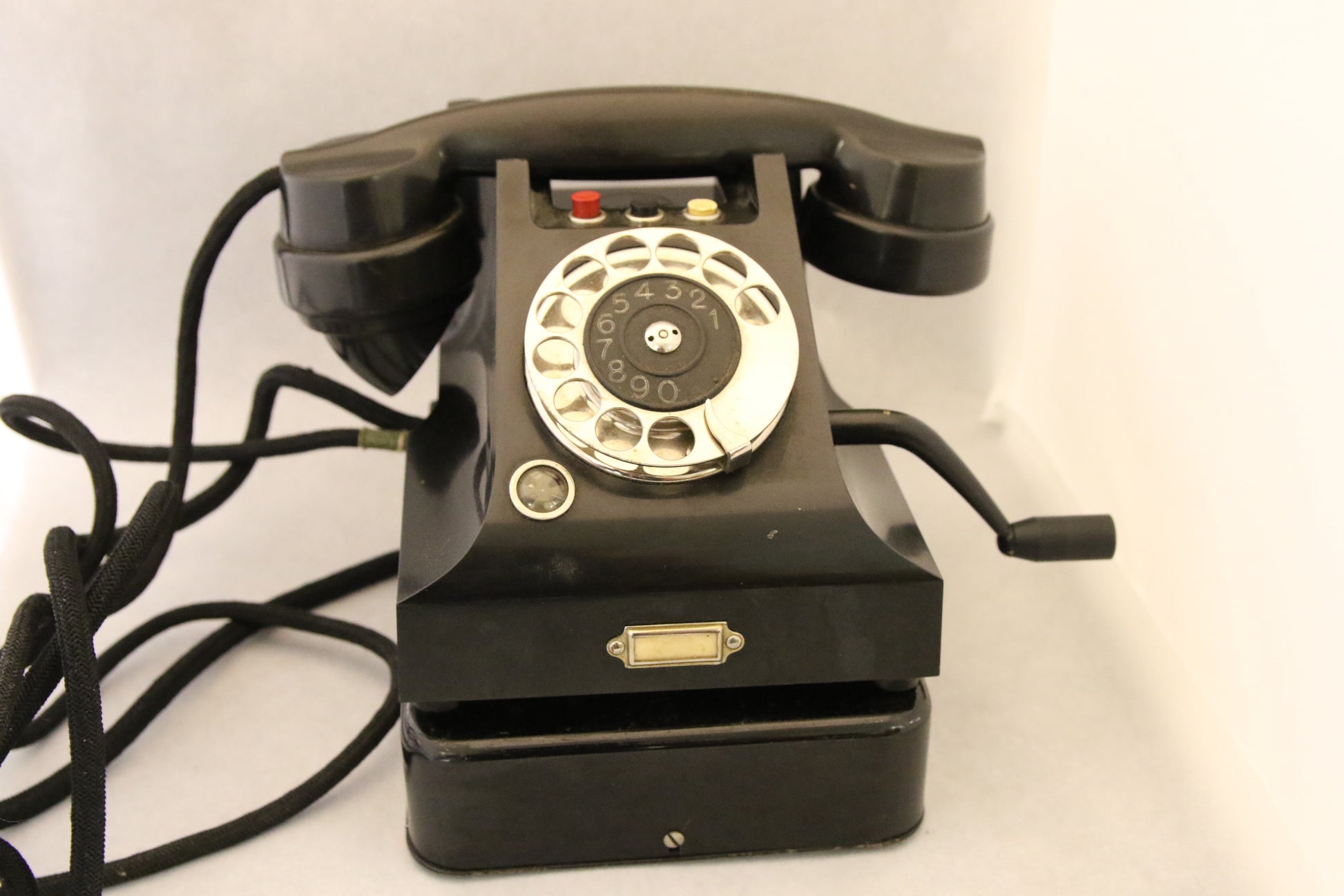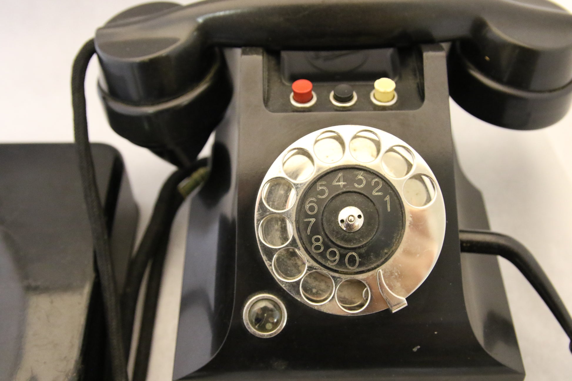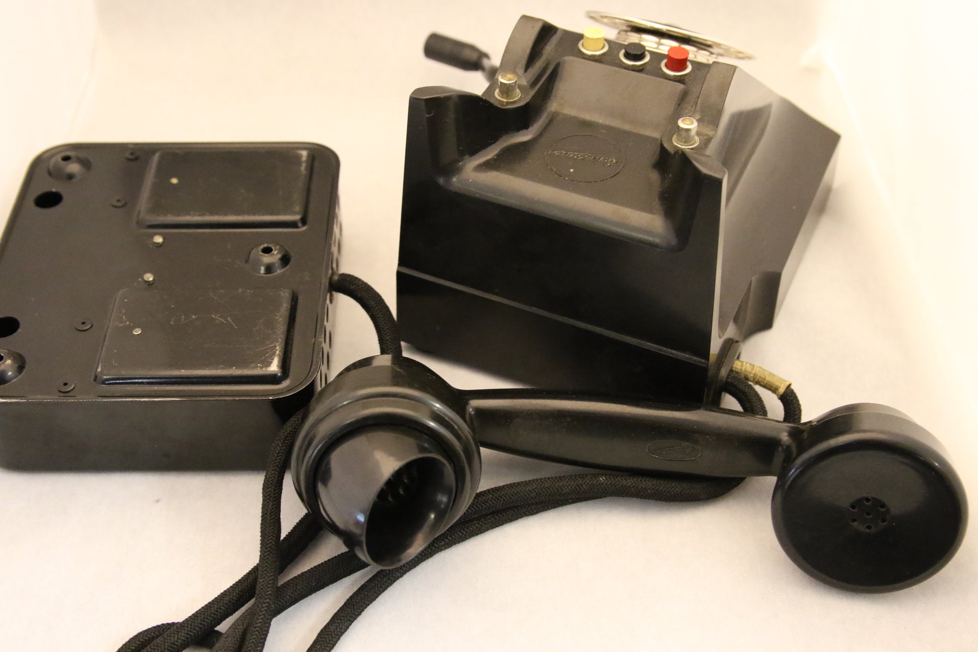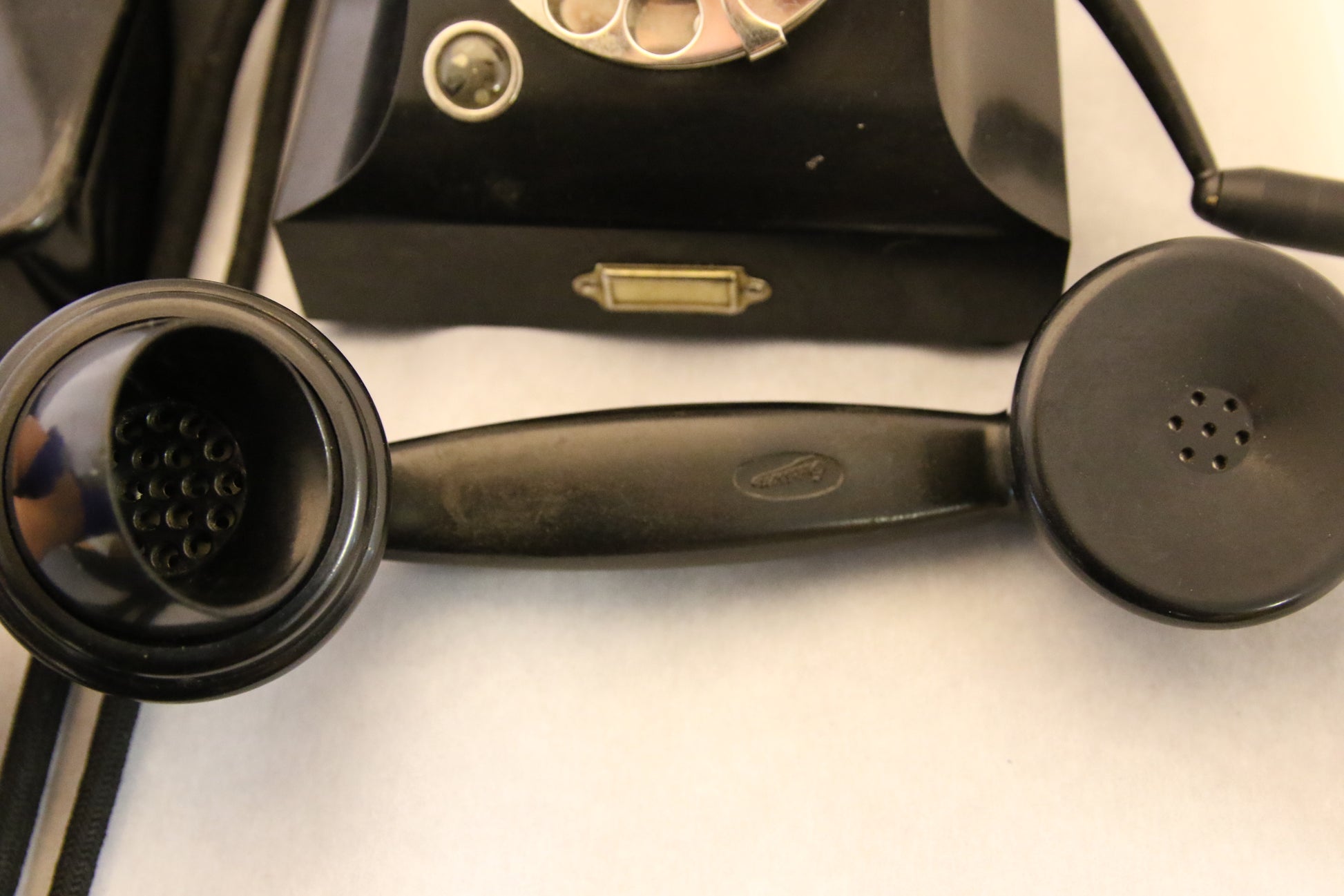 Koristeeksi vanha musta bakeliittipuhelin.