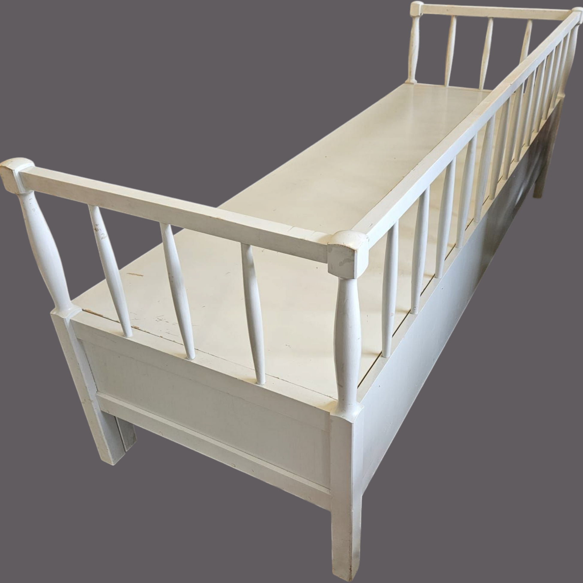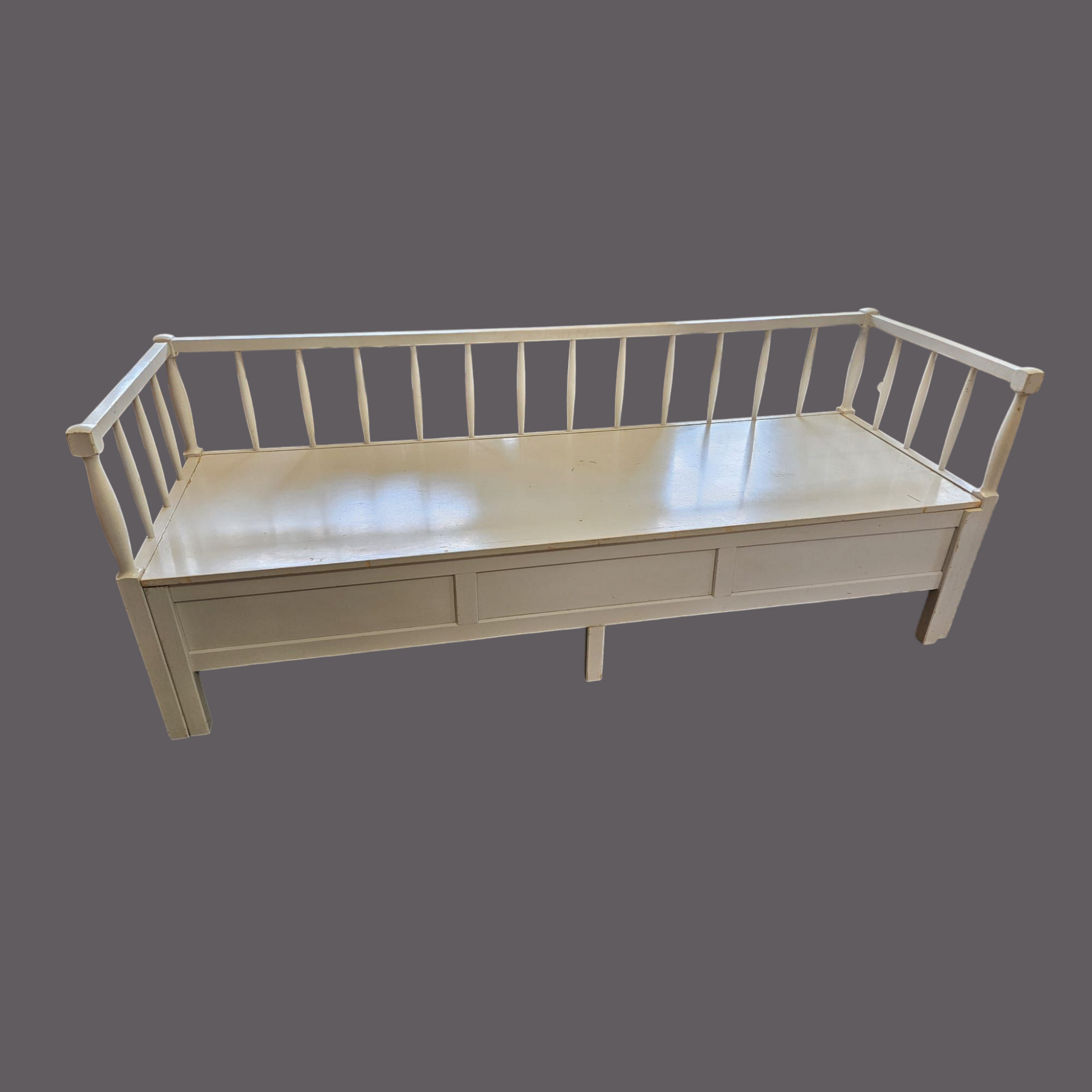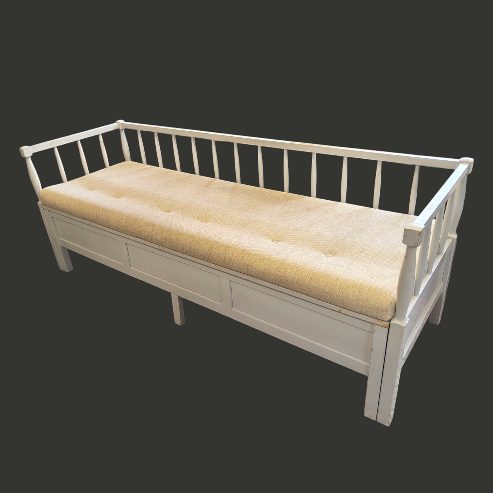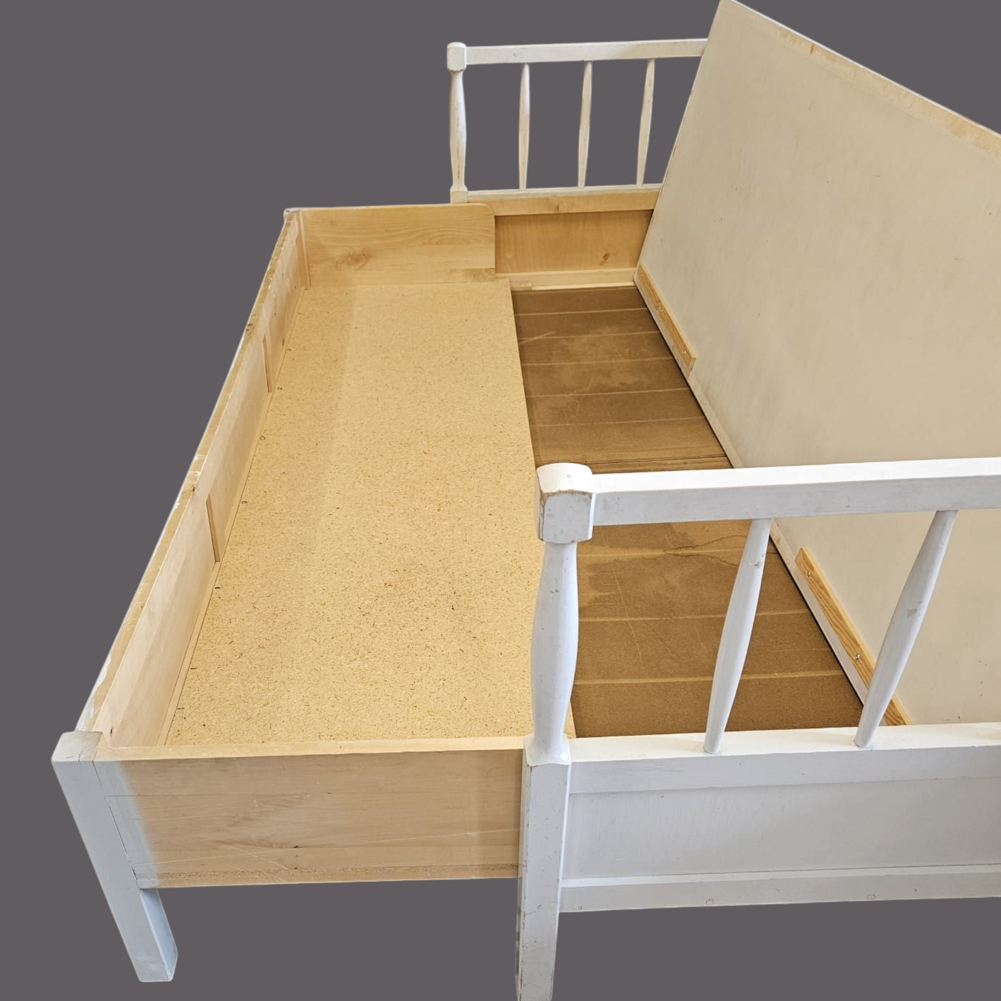Vanha puusohva, joka menee osiin. Osat kevyet kantaa. Mukana pehmuste.