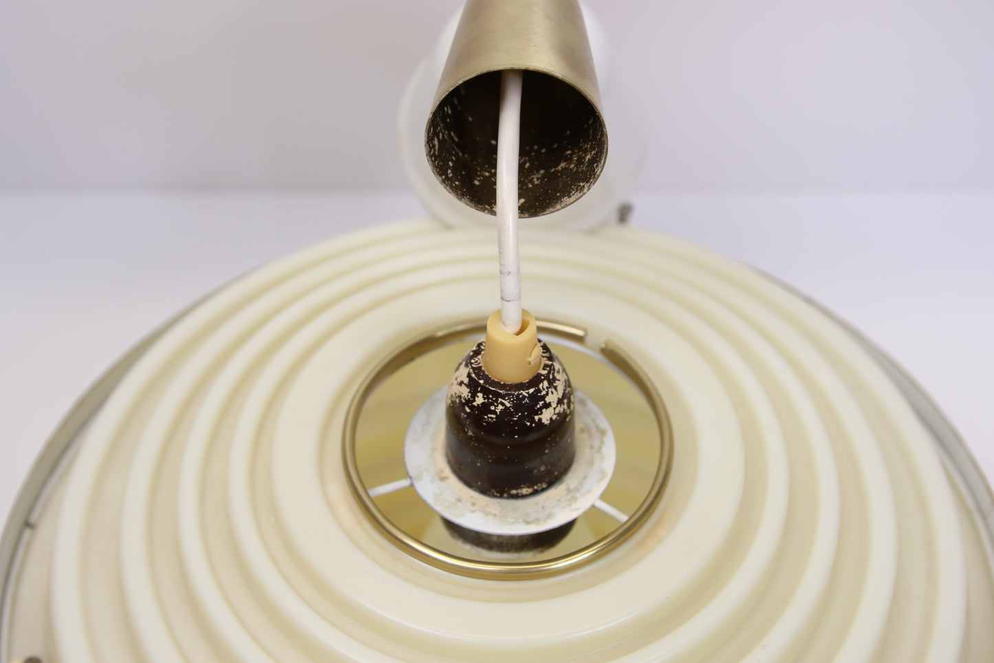 Retro kattovalaisin 50-60-luvulta, materiaali luultavasti akryylia. Kevyt. Siisti, hyväkuntoinen ja toimiva.