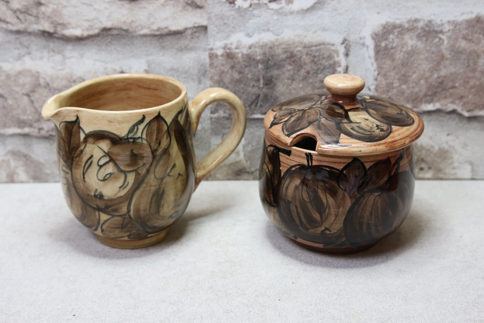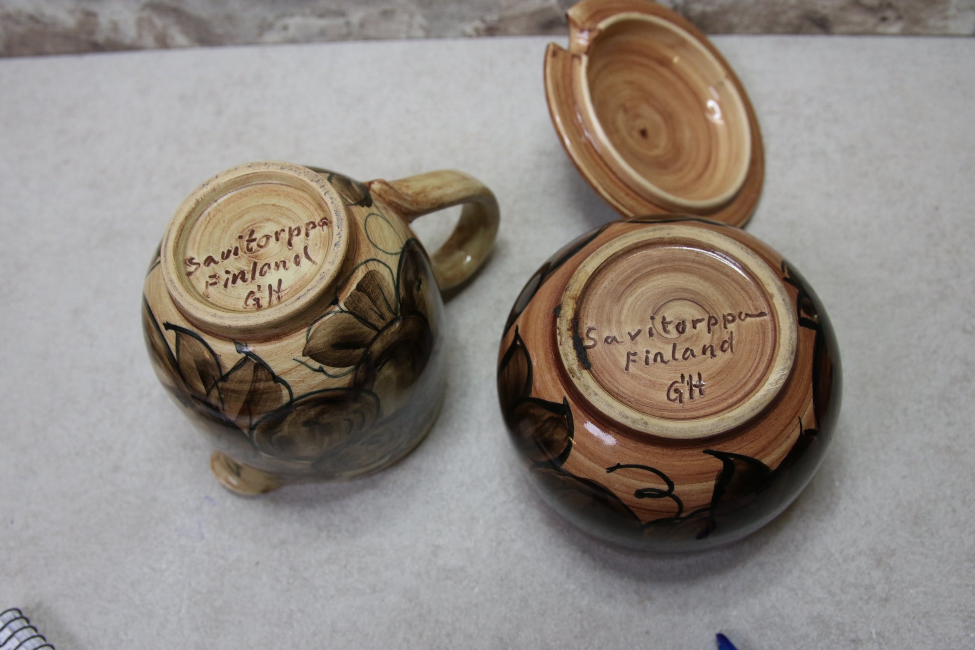 Käsinmaalattu, pohjissa signeeraus.