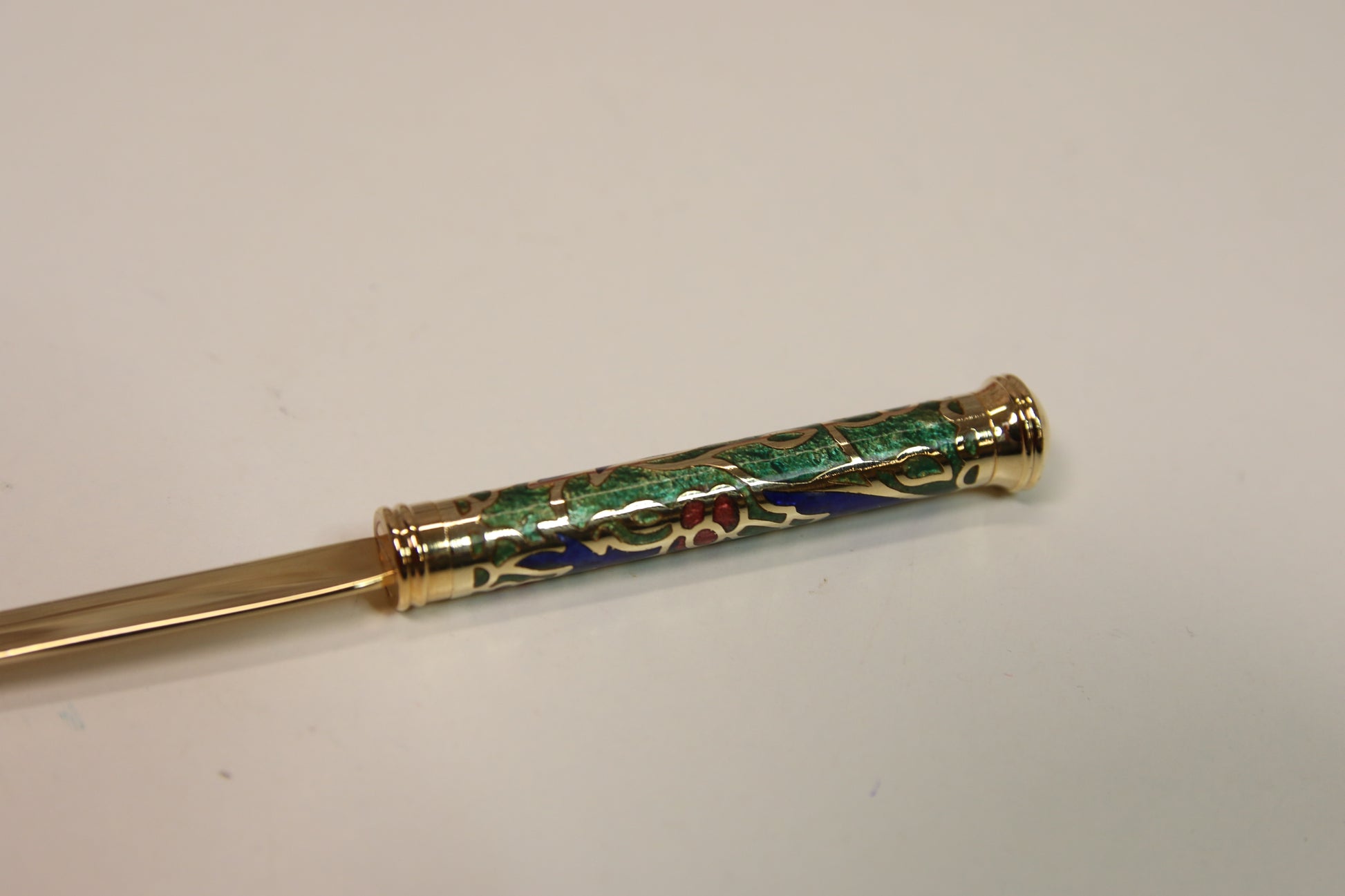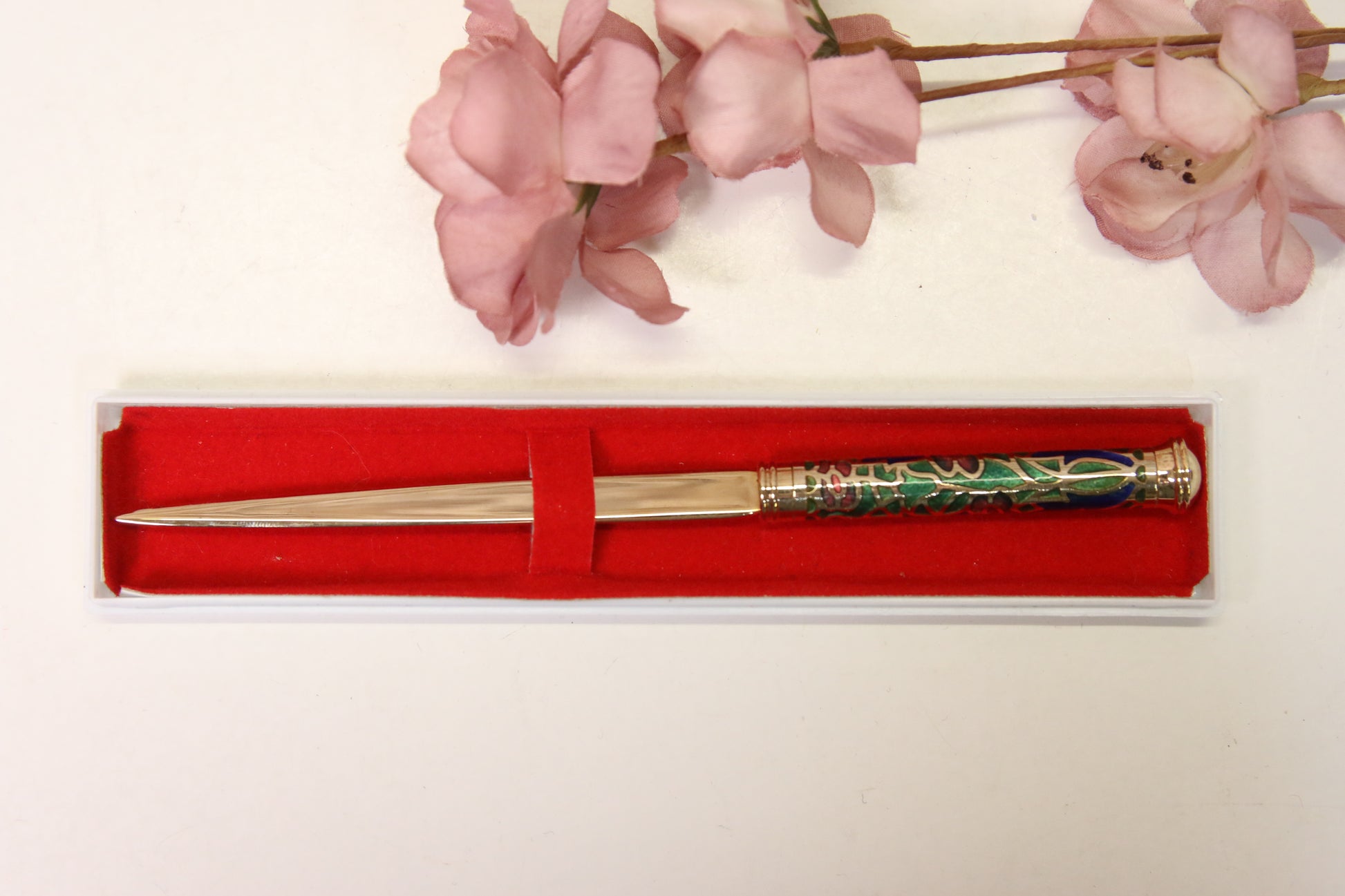 Uudenveroinen vintage soluemaloitu kirjeveitsi.