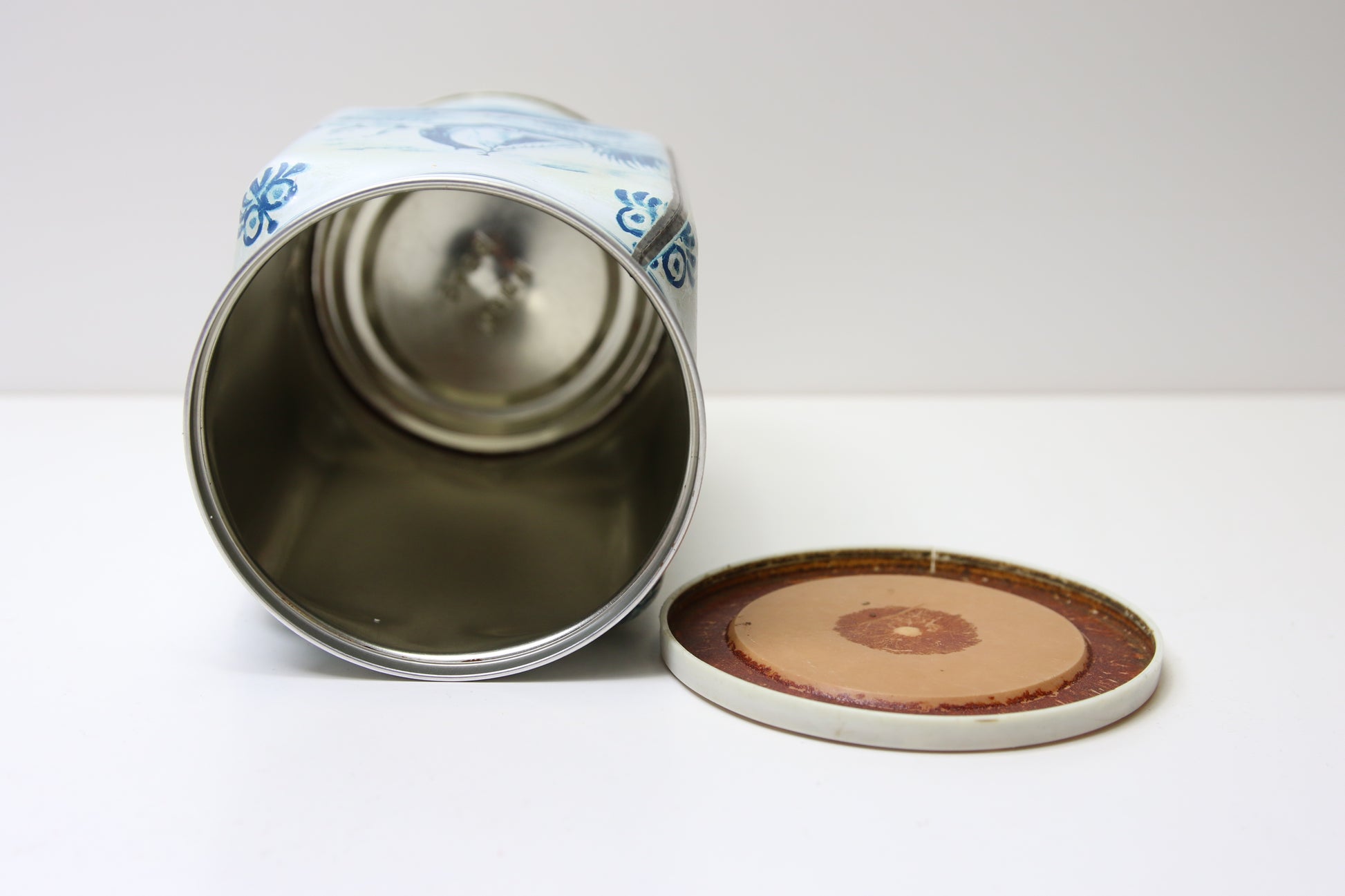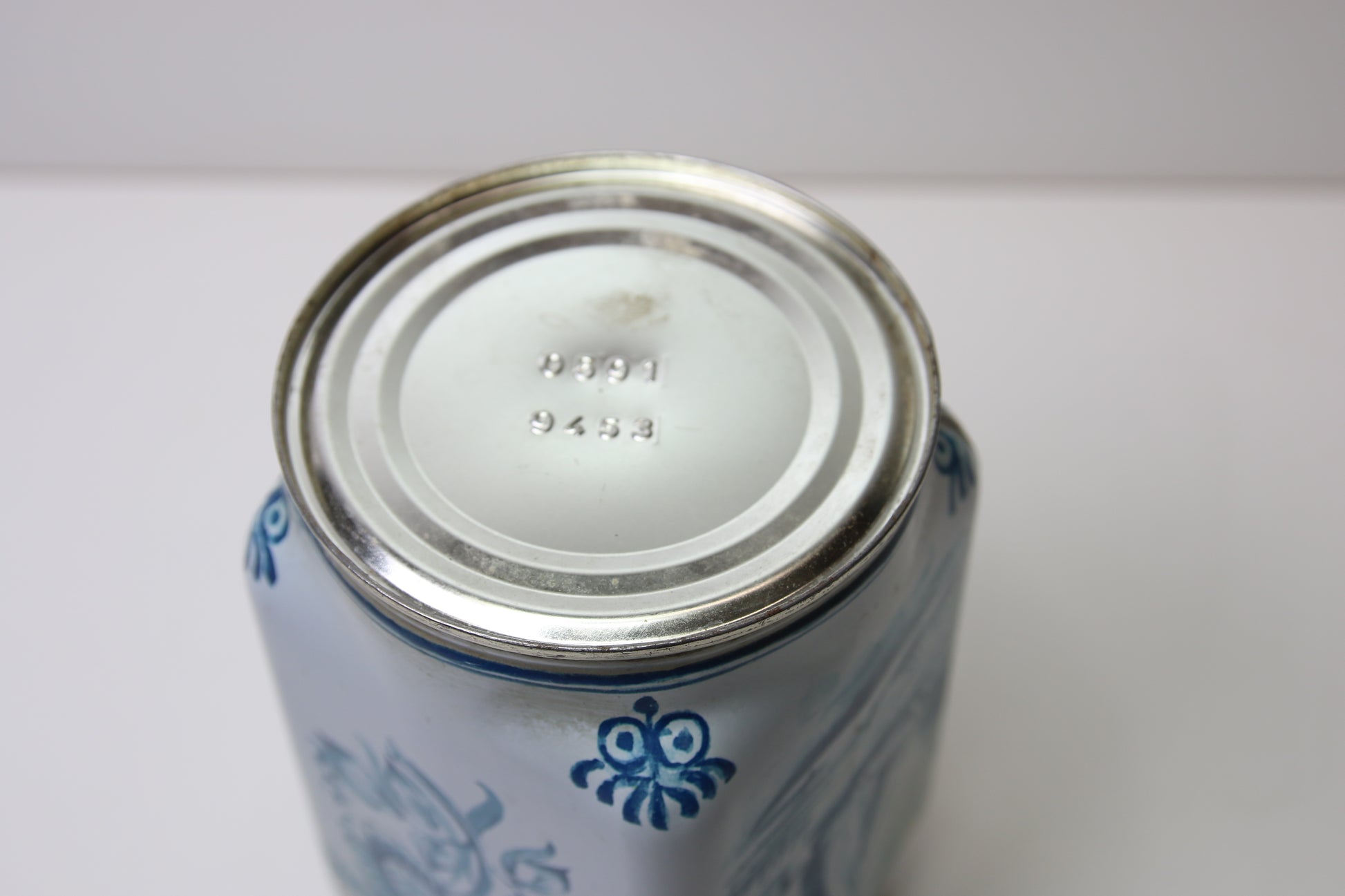 Metallinen vanha kahvipurkki.