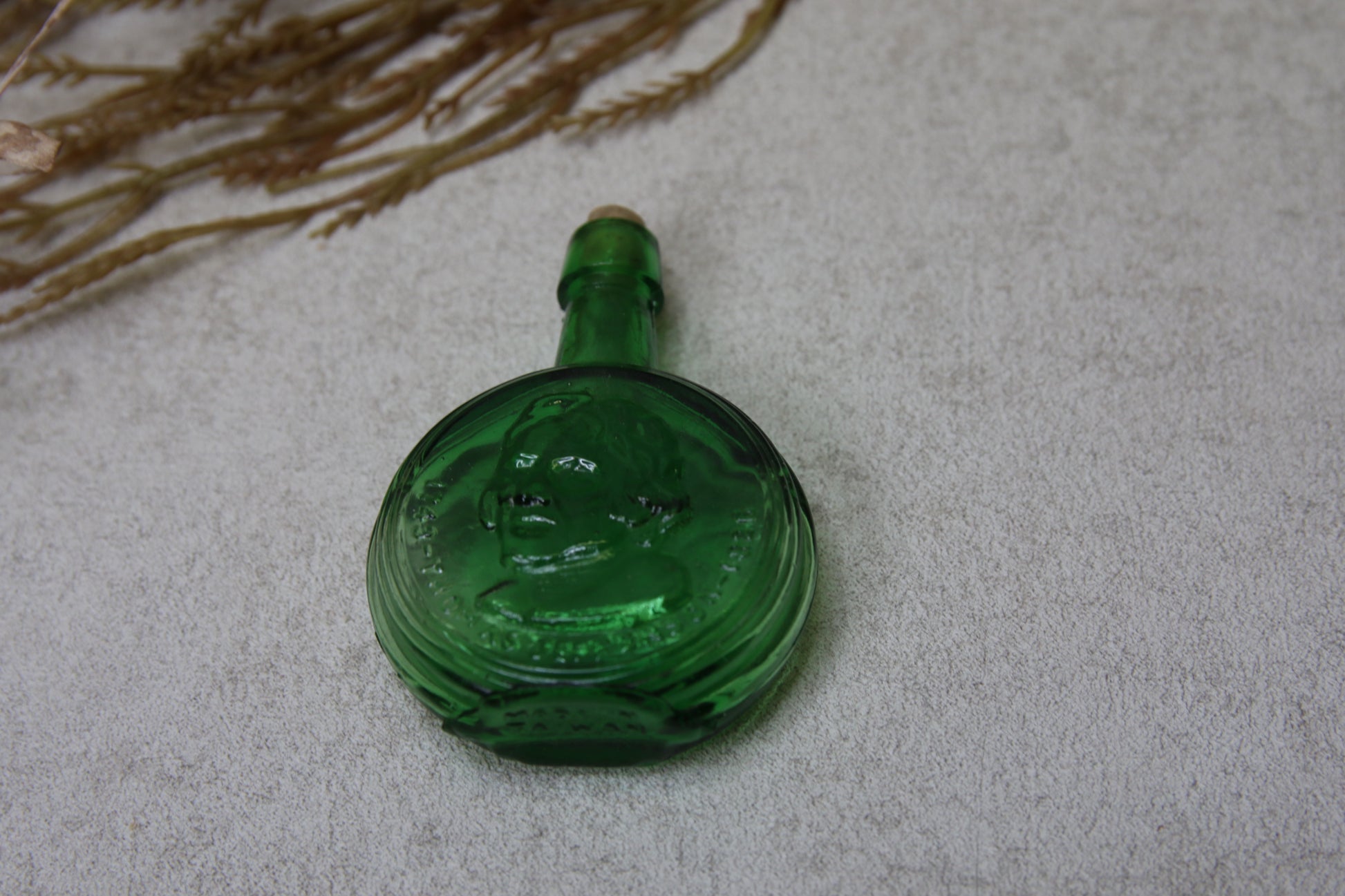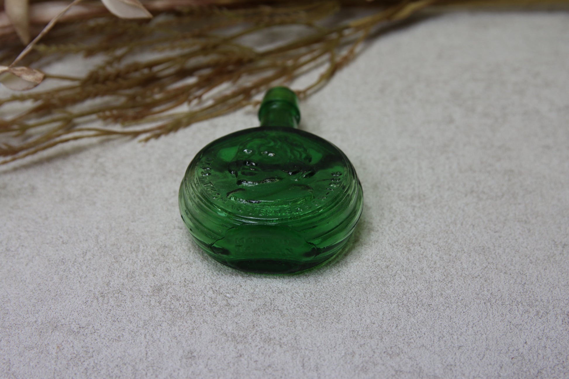 Vihreä pieni lasipullo